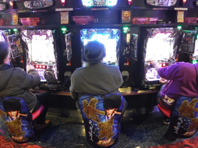 20円スロットコーナーに目を向けると、「パチスロ北斗の拳 修羅の国篇」に年代層を問わずプレイヤーが集まっていた。新たな演出なども多く追加されてるので、各々遊技を楽しんでいる様子だった。
