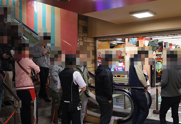 朝イチのパチスロでは満席となるほどに、プレイヤーたちが「バジリスク~甲賀忍法帖~絆」に注目していた。