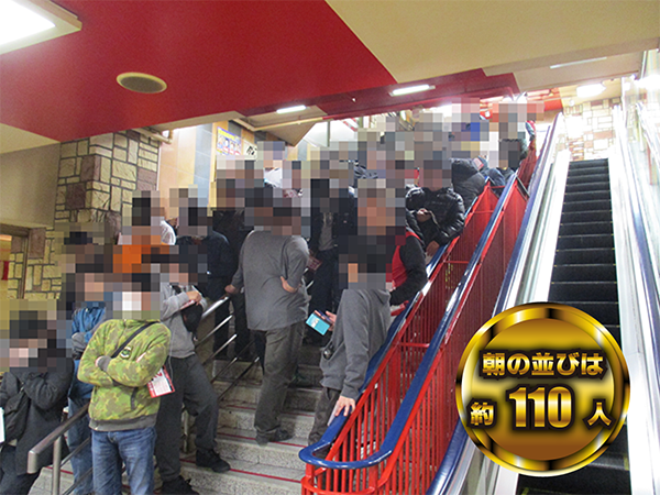 1月8日の朝イチは、入場整理券を手にしていたプレイヤーが約90名。一般入場を含めると110名ほどのプレイヤーが集まり、伝説の光景がみられるといった期待が大きくなった。