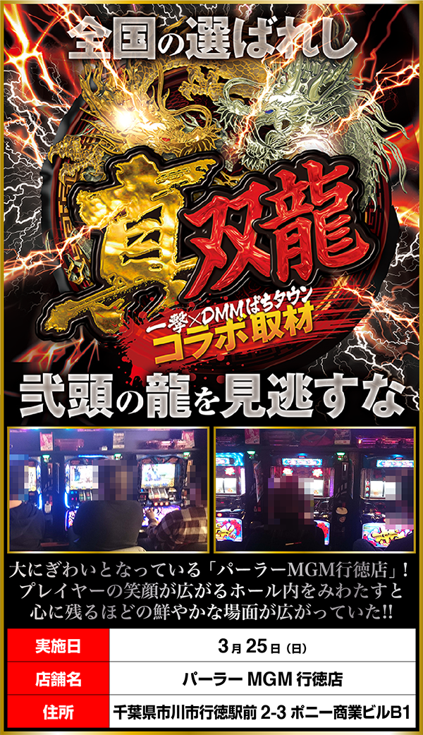 「真双龍」を敢行したのは、行徳駅をでてすぐの場所にある「パーラーMGM行徳店」。