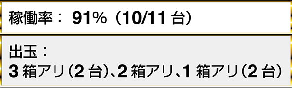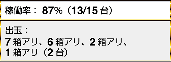 ジャグラーシリーズにおいては、『マイジャグラーⅣ』をはじめとした3機種以上で1箱を上回る出玉を確認している。