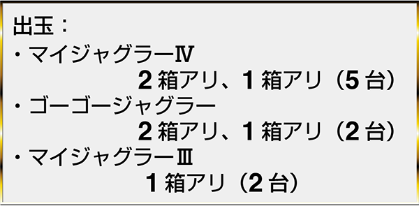 ・『マイジャグラーⅣ』の6台が出玉1箱以上