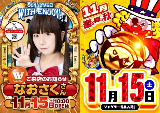 1位 10月22日(水) 2位 11月1日(土) 3位 11月12日(水)