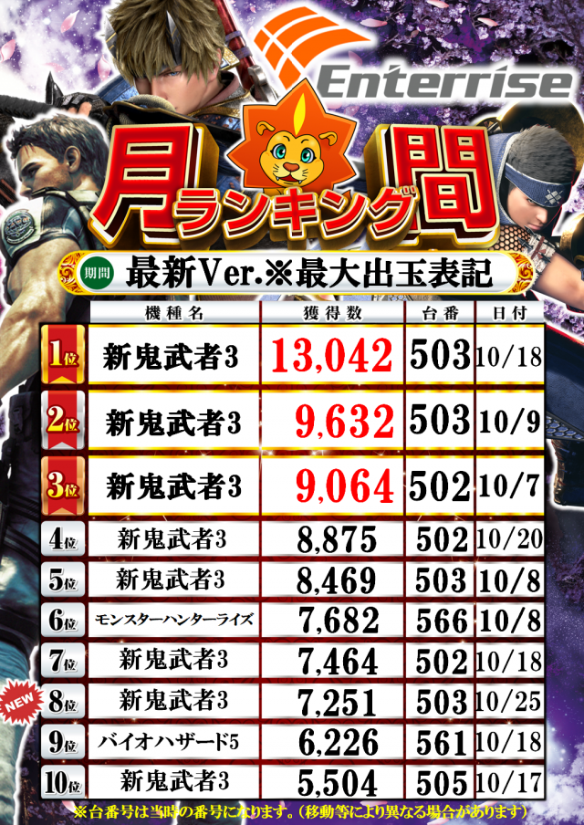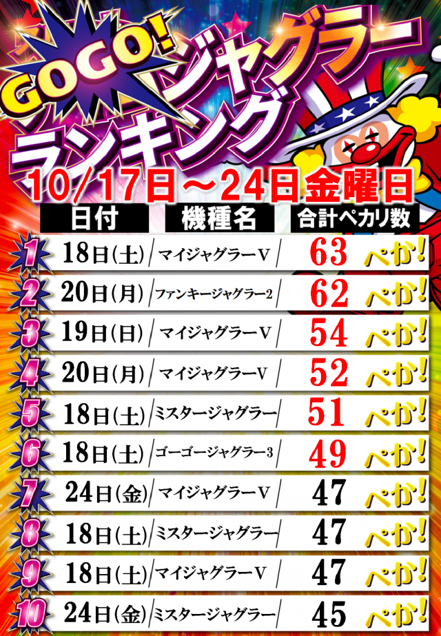 1位 10月8日(水) 2位 10月9日(木) 3位 10月1日(水)