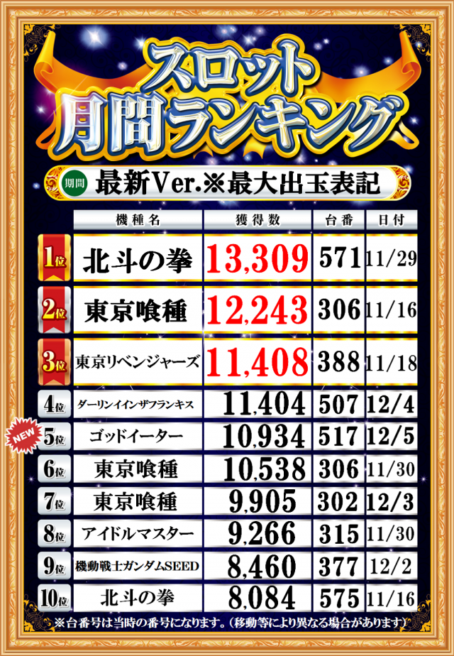 1位 12月8日(月) 2位 11月28日(金) 3位 11月30日(日)
