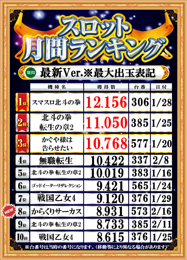1位 1月30日(金) 2位 2月18日(水) 3位 1月31日(土)