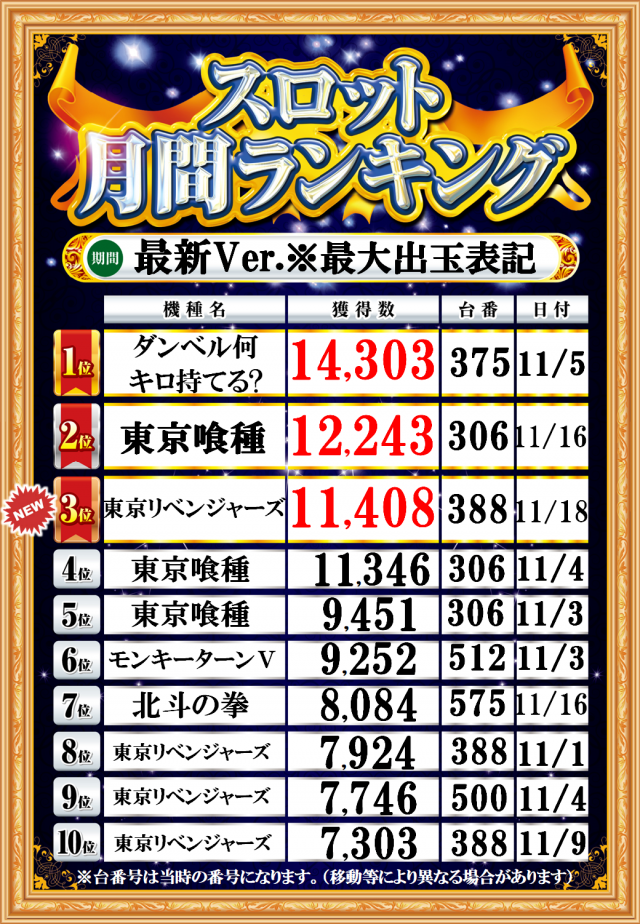 1位 11月8日(土) 2位 11月28日(金) 3位 11月18日(火)