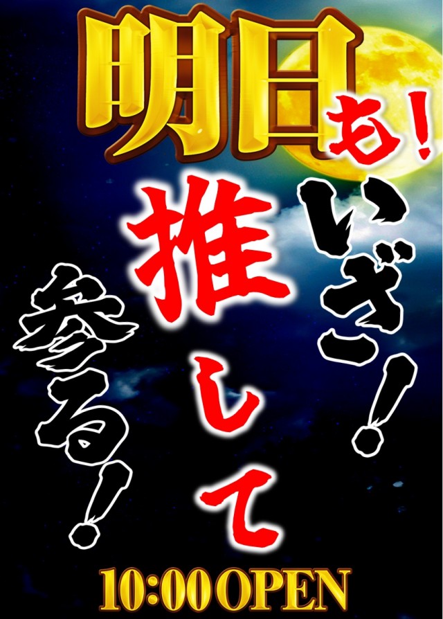 明日15日10時OPEN!いざ!推して参る!!