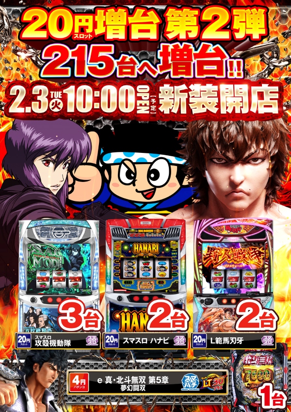 明日は新装開店🎯スロット人気機種増台🎯10時オープン‼