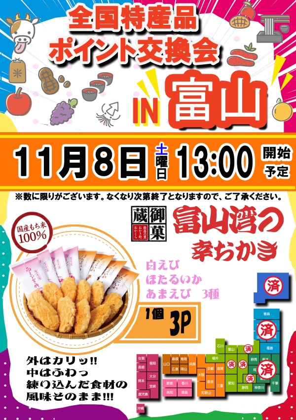 週末はカザン❗本日は全国特産品ポイント交換会開催🍘