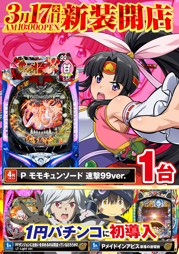 本日新装開店🎯4円パチンコ最新台導入10時オープン‼