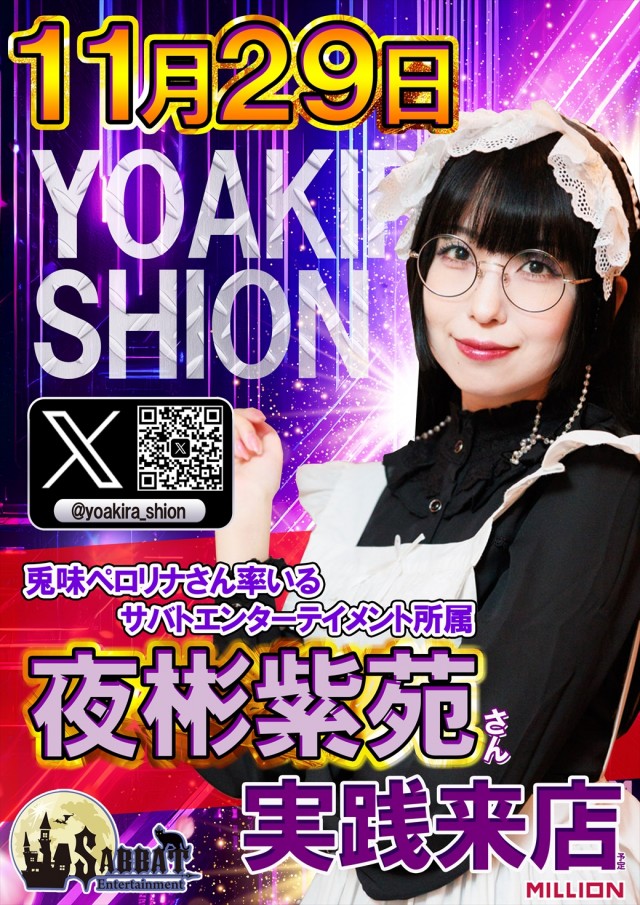 明日11月29日『🌹夜彬紫苑さん🌹』来店予定!!