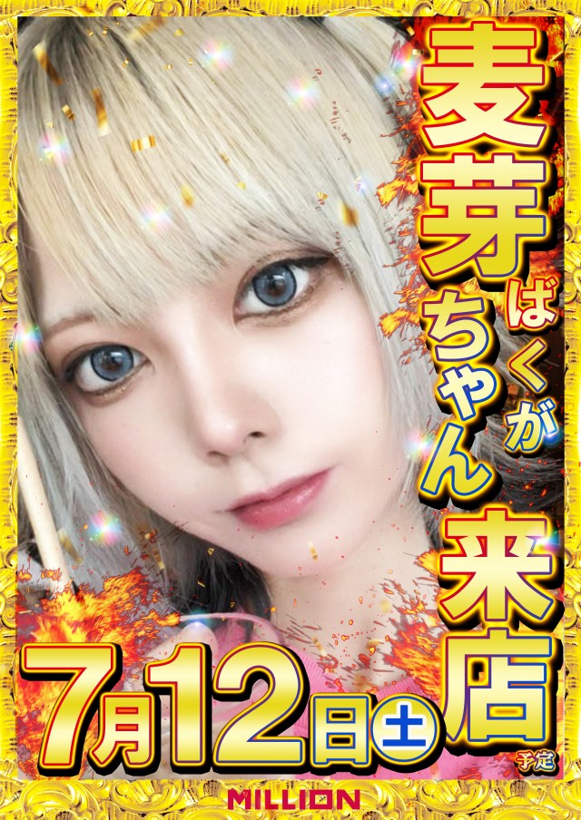 週末もミリオンへ!!明日 7/12日【麦芽ちゃん来店】予定…