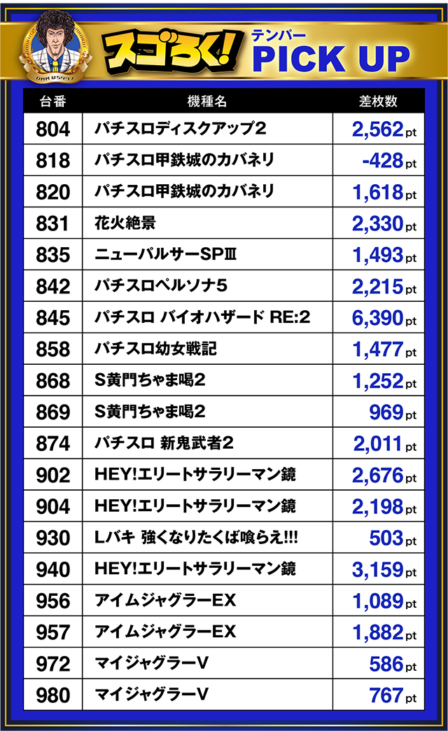パチスロ全体をみわたせるほどの広い視野を活かして、数多くの優秀台を選んでもらおう。