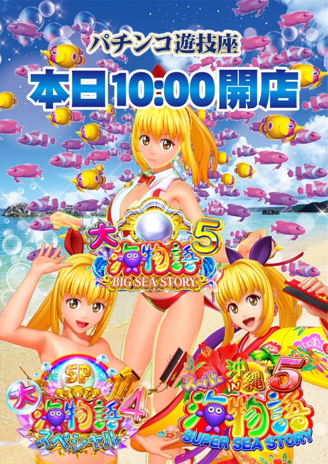 本日【海の日】10時オープン❗連休は遊技座でお楽しみください