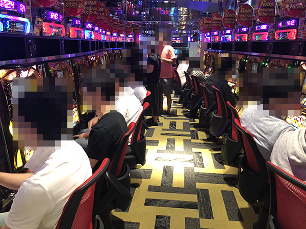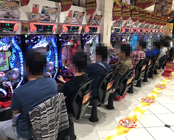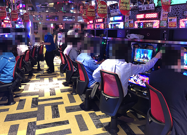 「ミリオンゴッド-神々の凱旋-」や「押忍!番長3」にも、イキイキとした表情でレバーを叩くプレイヤーが多い。うれしそうに笑みを浮かべる様子からは、満足度の高さがうかがえた。