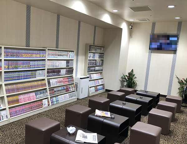 ゆったりとしたレストスペースには、テレビやマンガが用意されており、休憩中もしっかりとリフレッシュできる印象を受けた。