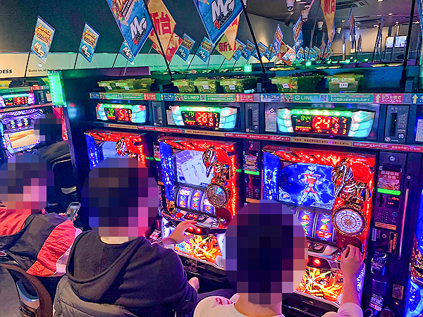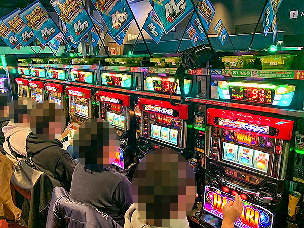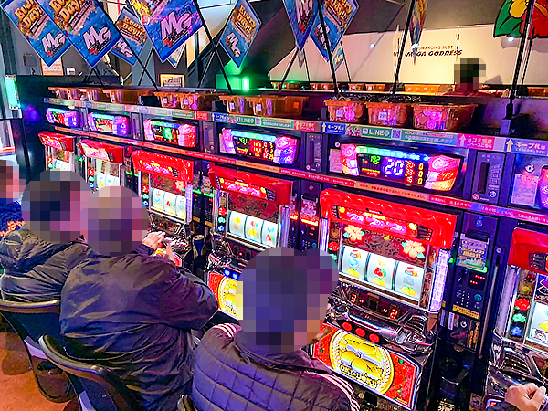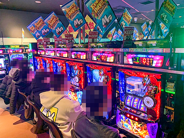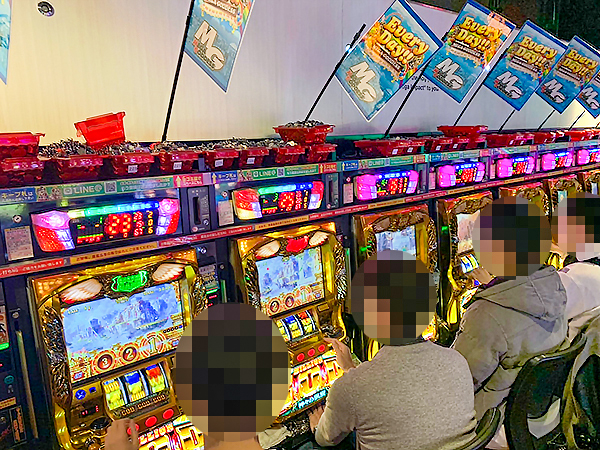 14時過ぎの20円パチスロでは「ミリオンゴッド-神々の凱旋-」や「沖ドキ!-30」、「プレミアムハナハナ‐30」が好評を得ており、プレイヤーの満足そうな表情を至る所で目にしている。