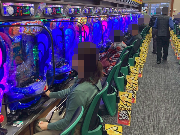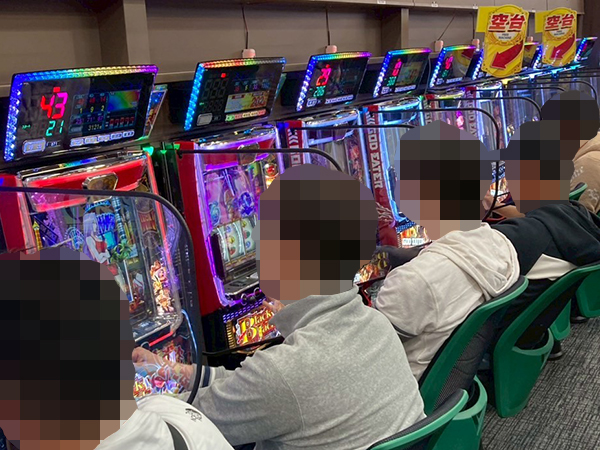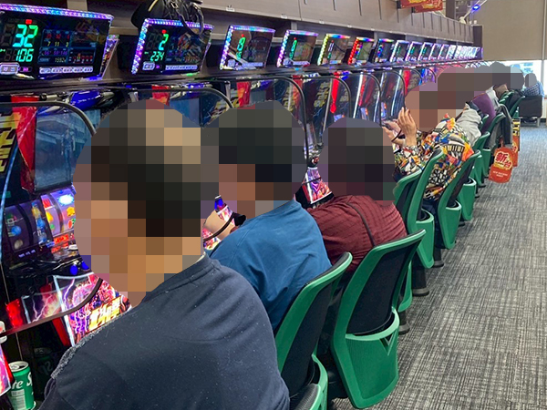 取材時は既に多くのプレイヤーが集結し、パチンコ・パチスロを問わずにぎやかな状況となっていた。