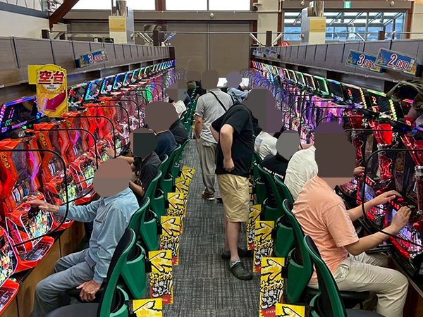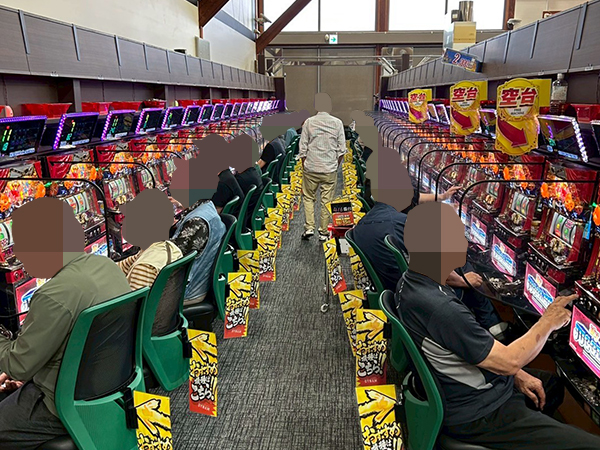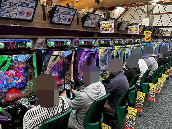 15時半ごろの100円/91玉パチンコでは「PA大海物語5 Withアグネス・ラム」や「デジハネP北斗の拳 慈母」などの甘デジで好調なプレイヤーが多数見受けられ、時折見せる嬉しそうな表情が印象に残っている。