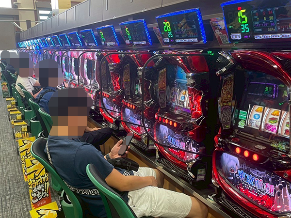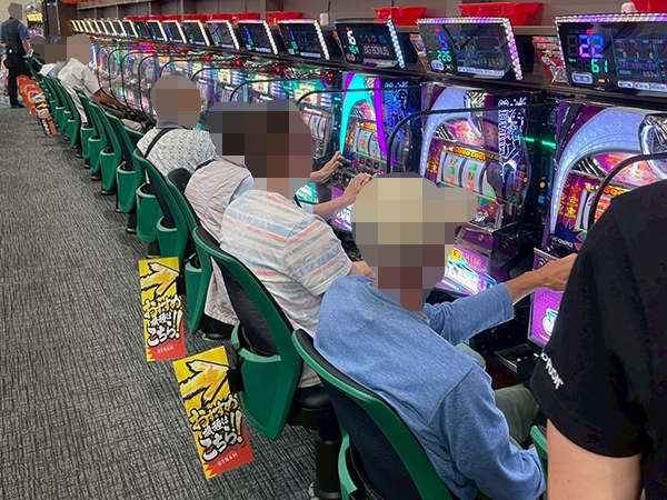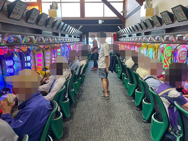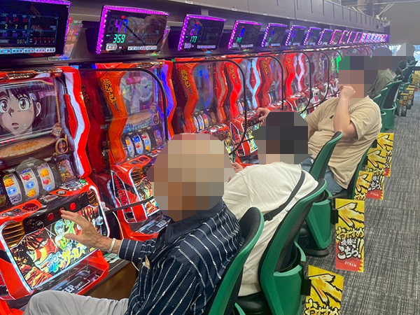 取材時は既に多くのプレイヤーであふれており、パチンコ・パチスロを問わず楽しげな表情でいっぱいだった。