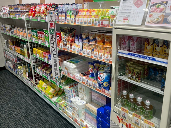 景品コーナーにはお酒・インスタント食品・来店ポイント専用景品など多彩なアイテムが揃っており、プレイヤーたちの目を引いていた。