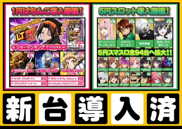 本日26日10時 1円ぱちんこ&5円スマスロ 新台登場🎉💖