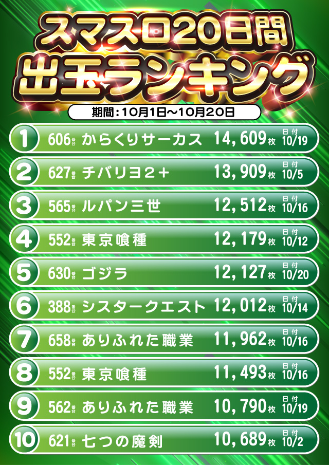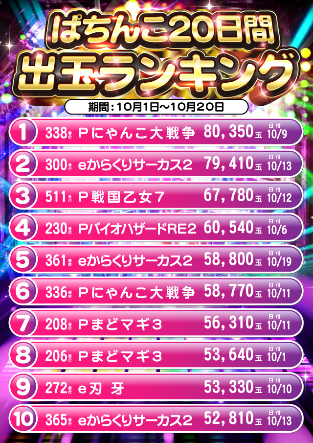1位 10月12日(日) 2位 10月19日(日) 3位 10月5日(日)