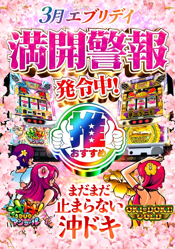 3月開幕!【土日★沖ドキ】スロット&パチンコメイン機勢ぞろい