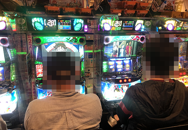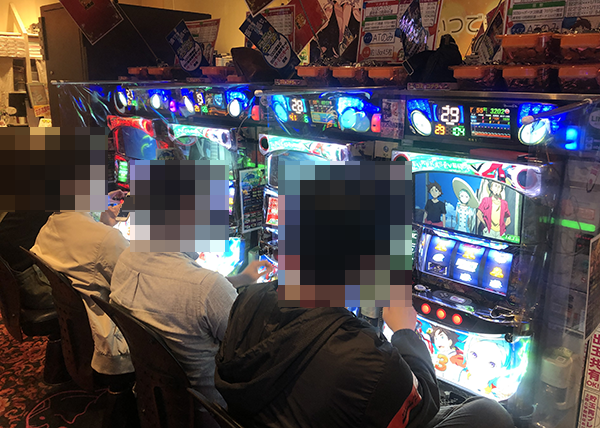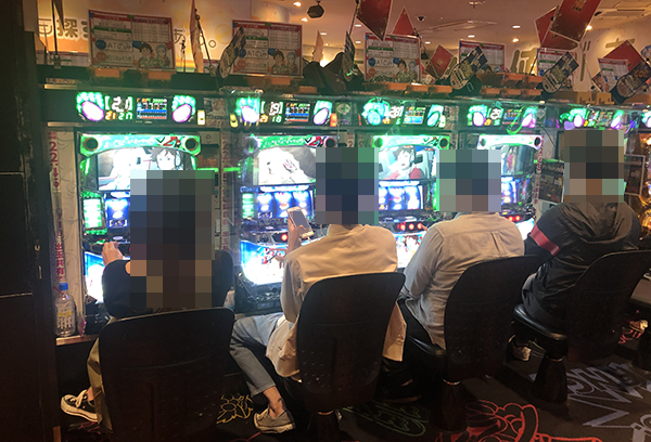 18時頃にパチスロの状況をうかがうと、さまざまな場所に遊技を満喫しているような姿があった。