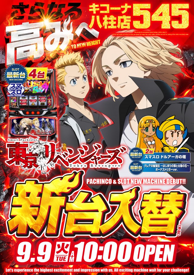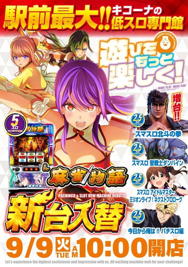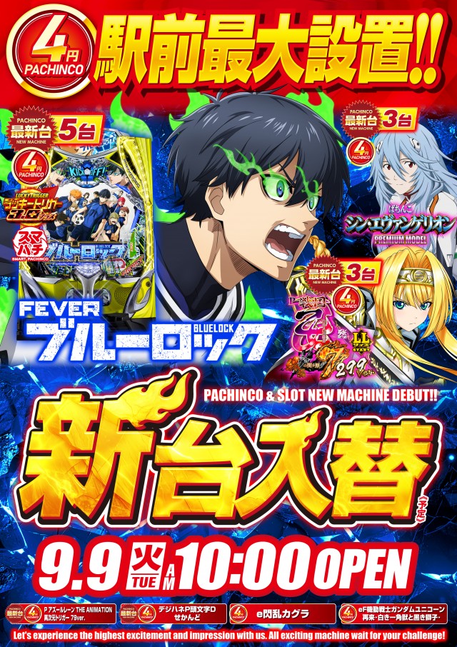 9月9日(火)新台入替!!