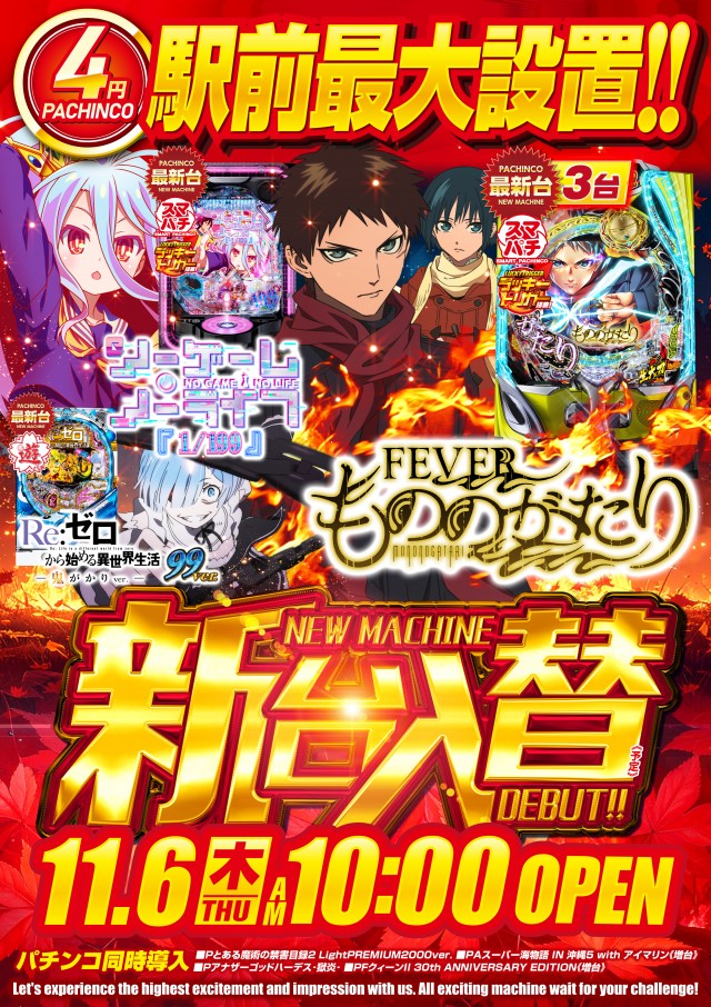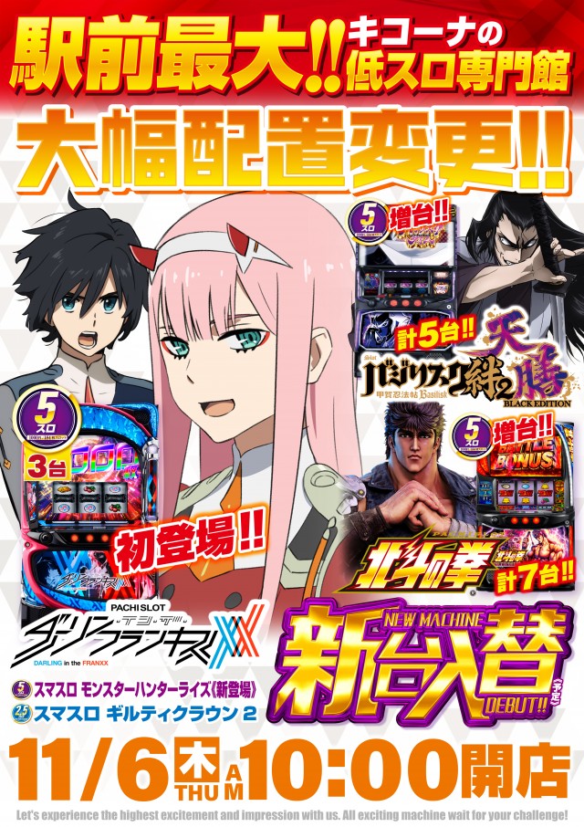 11月6日(木)新台入替!!