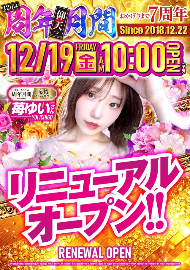 12月22日(月) キコーナ八柱店7周年!
