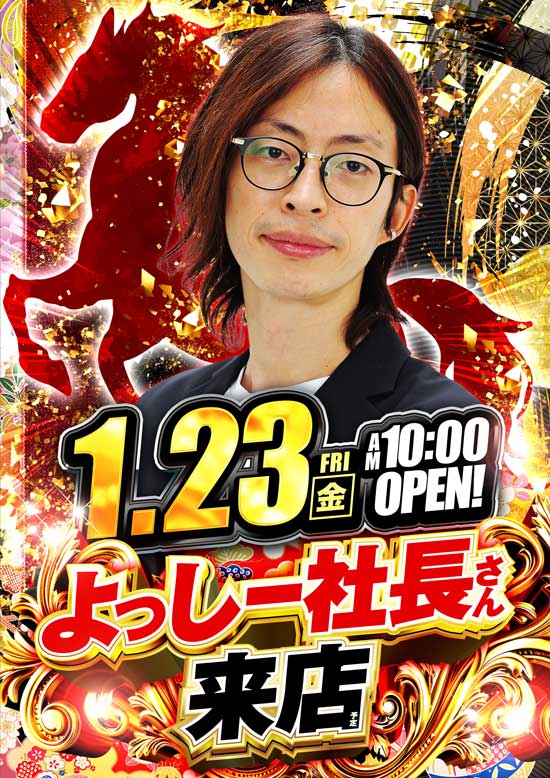 本日1/23(金)よっしー社長来店予定!!抽選時間9:45‼