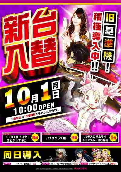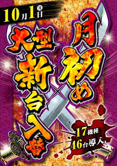 明日10月1日(月) 新台入替 全館10時開店
