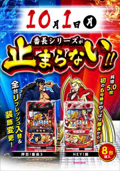 番長シリーズに新たな仲間が登場!!★ リフレッシュ ★押忍!番長3- 全10台 -&★シリーズ最新作★HEY!鏡- 全8台導入 -