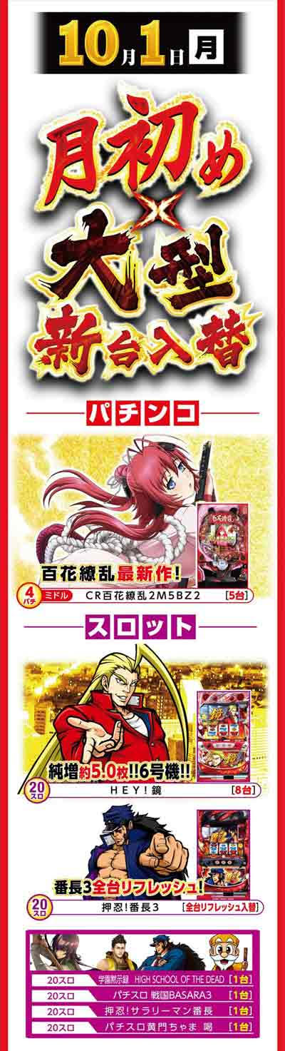 本日10月1日(月) 新台入替 全館10時開店