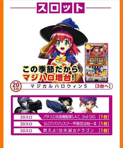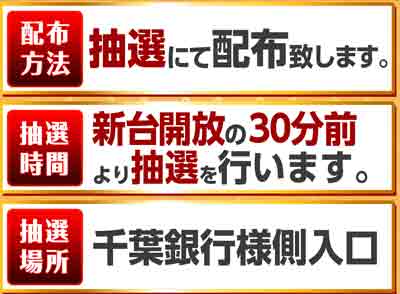 1パチ・4パチ・20スロ:朝9:30から抽選開始 10スロ・5スロ:朝9:30から先着順配布 |