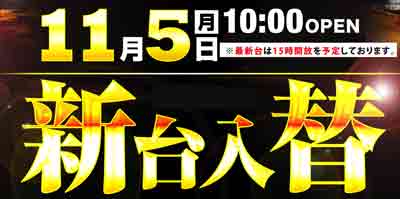 本日11月5日(月) 全館10時開店&新台入替!!