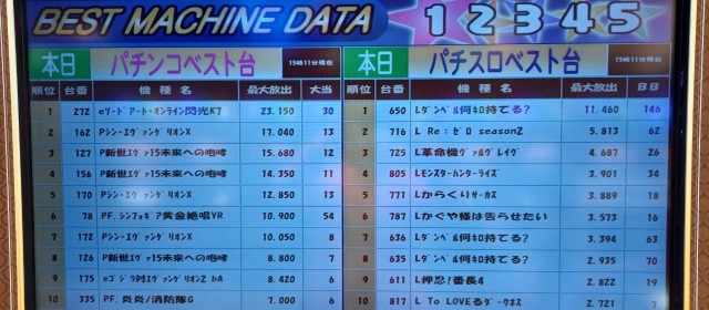 当タイトルの目的は名前通り低貸しコーナーを探ることにあるが、当日は3つの交換率による出玉データを入手できたので、それぞれを分析していく。
