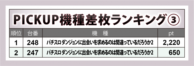 その他では『パチスロ ダンジョンに出会いを求めるのは間違っているだろうか2』が設置2台が双方プラスだった点は評価できる。