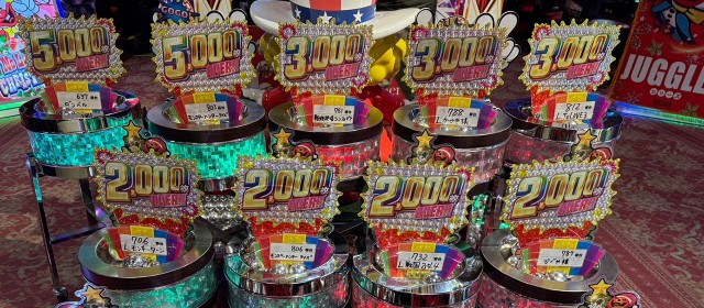 10台全てが+2,900枚以上をマーク、+3,000枚以上は9台、+4,000枚以上は7台、+5,000枚オーバーは3台、+6,000枚オーバーは2台、そして万枚をクリアしたのは1台と、初日にはなかったプラス5桁をカウントできたのは喜ばしい。