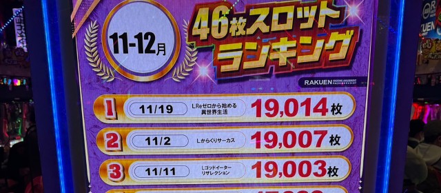 まずは[1000円/46枚]スロの10台ランキングをお送りする。