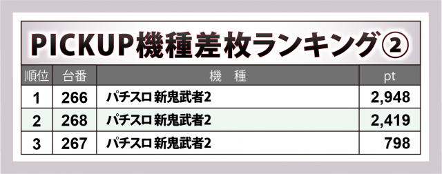 当コーナーの『新鬼武者2』は設置3台全てが勝利を結び、+2,900枚超・+2,400枚超が1台ずつと、限られた時間の中で確実なプラス差枚数をゲットしていた。