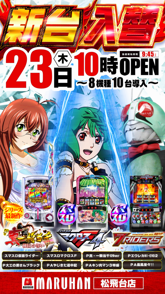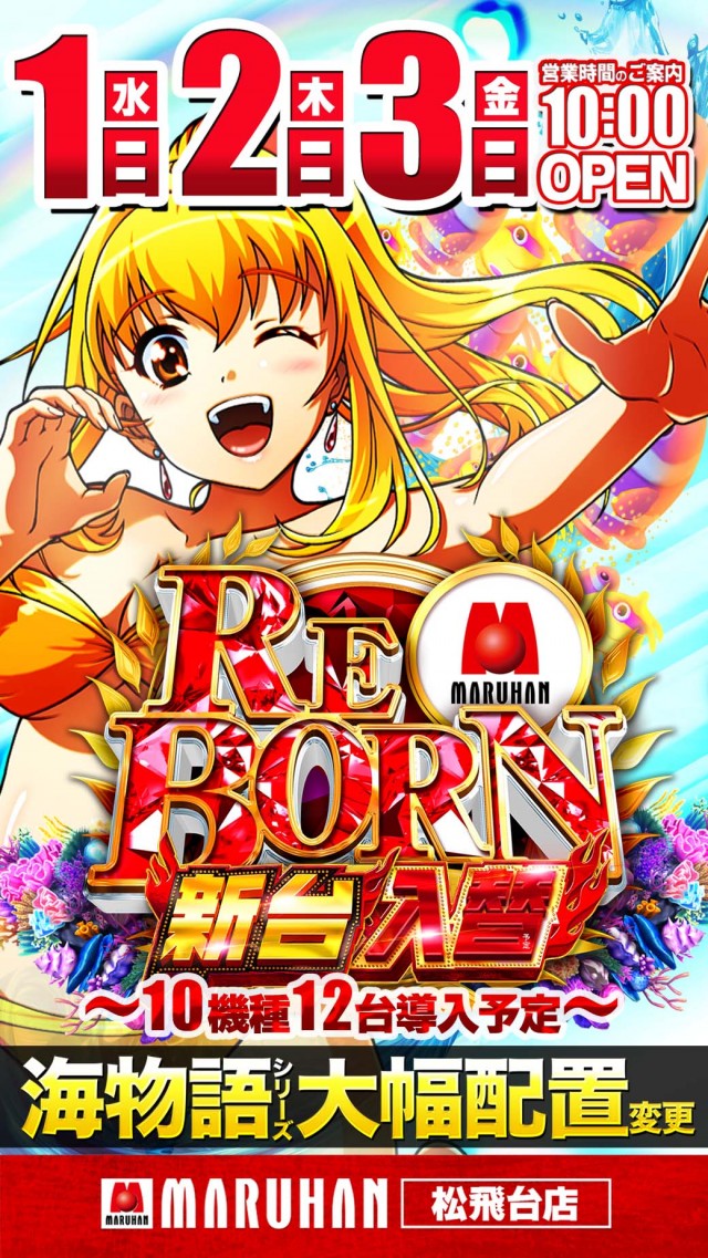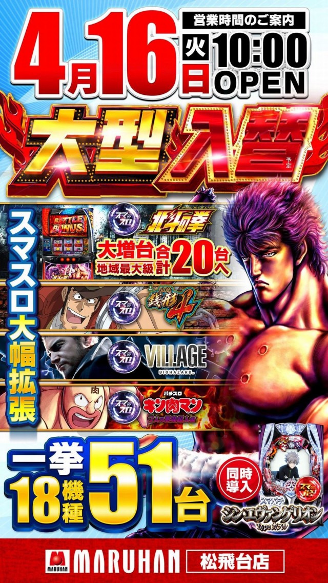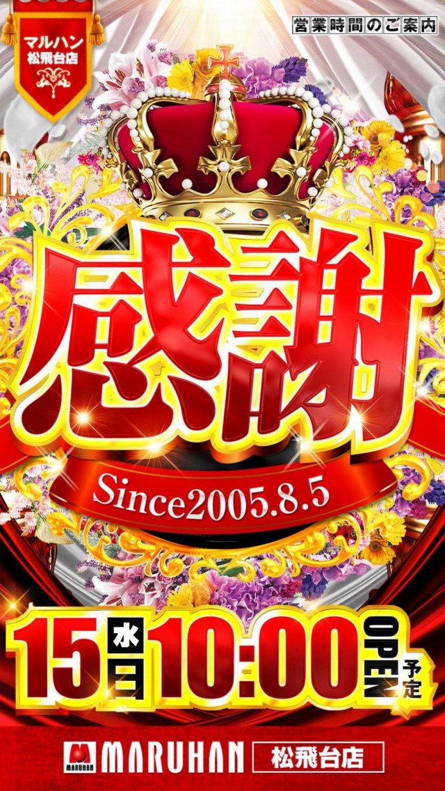 【松飛台】⑥月⑤日 朝⑩時開店 ~大型新台入替済~