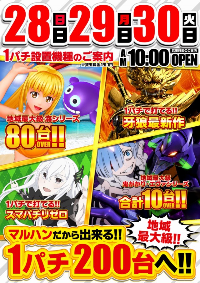 週末もマルハン!販売会開催&大型新台入替完了! 朝10時開店