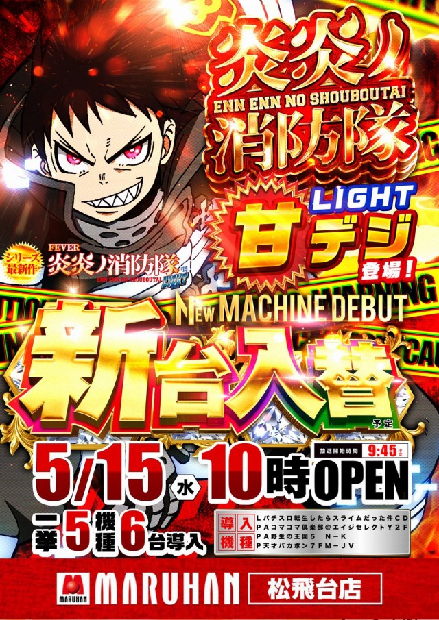 5/15(水)新台入替!炎炎の消防隊甘導入!!