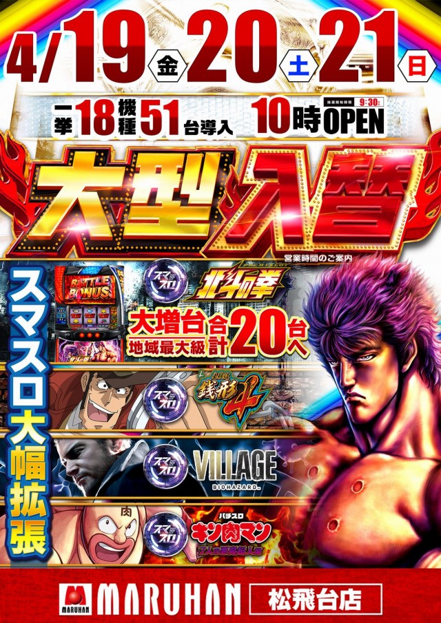 4月19日新台入替完了!スマスロ大増台!! 朝10時オープン
