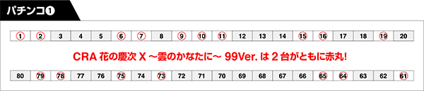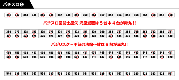 パチスロにおいては、活気づいている「パチスロ聖闘士星矢 海皇覚醒」から4台を赤丸台にチョイス!
