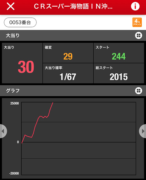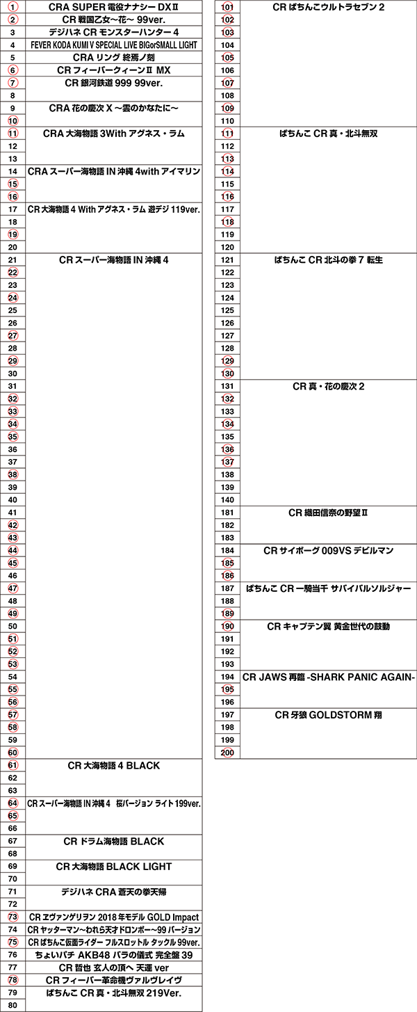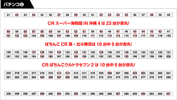 なかでも、赤丸を23個つけた「CRスーパー海物語IN沖縄4」の盛り上がりが大きかった。